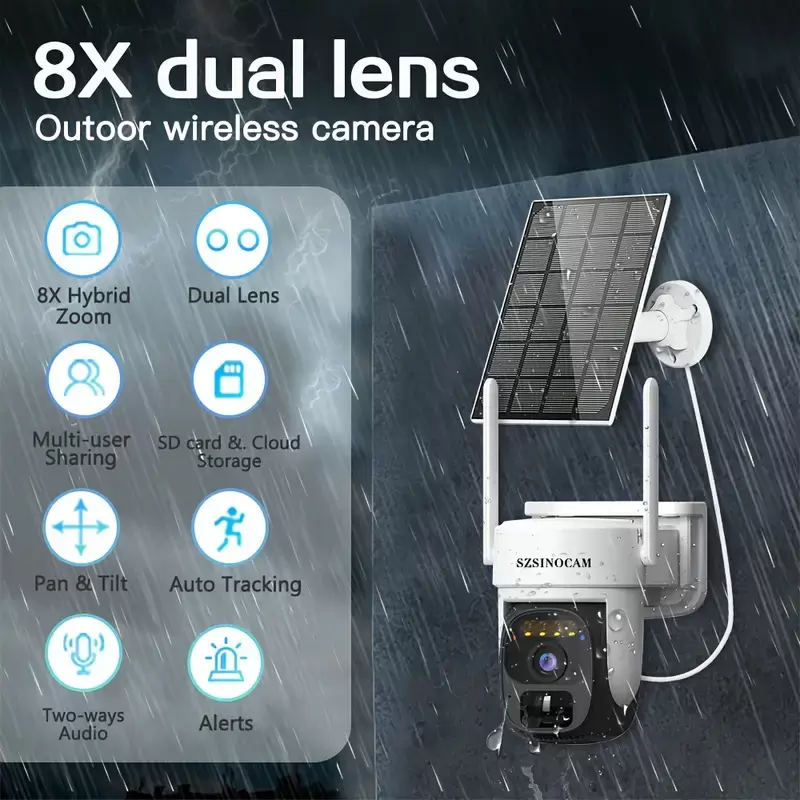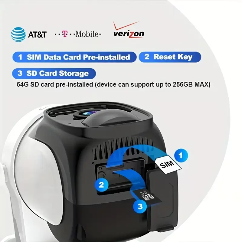Güneş enerjili SIM kartlı 3G/4G LTE AB Hücresel Güvenlik Kamerası (Verizon AT&T T-Mobile), Kablosuz Dış Mekan WiFi Olmayan Güvenlik Kamerası, 2K HD PTZ Gece Görüşü Hareket Algılama 2 Yönlü Konuşma SD&Bulut Depolama, 32G Kart ile, 360 Derece Panoramik Gözetim, Dış Mekan/İç Mekan, Pan Tilt Döndürme, İnsan/Hayvan Güvenlik Algılama
