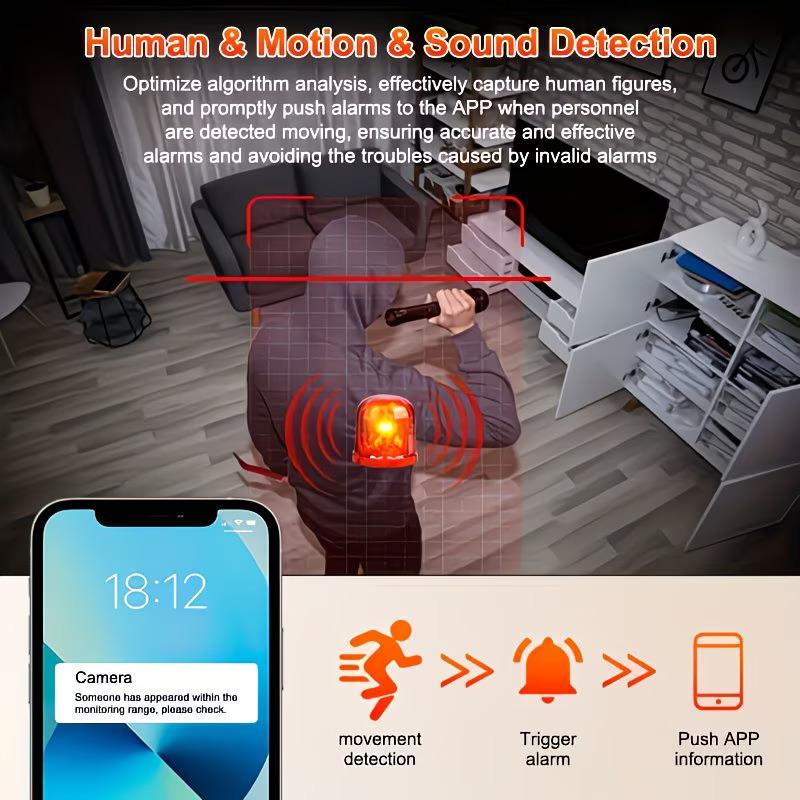 Güvenlik Kamerası | Hareket Algılama, Renkli Gece Görüşü, Alarm Bildirimi, Full HD Kablosuz Wi-Fi Akıllı Ev İzleme Kamerası, 355° Panoramik Yürüteç Kontrolü, Akıllı Hareket Algılama, Çift Yönlü