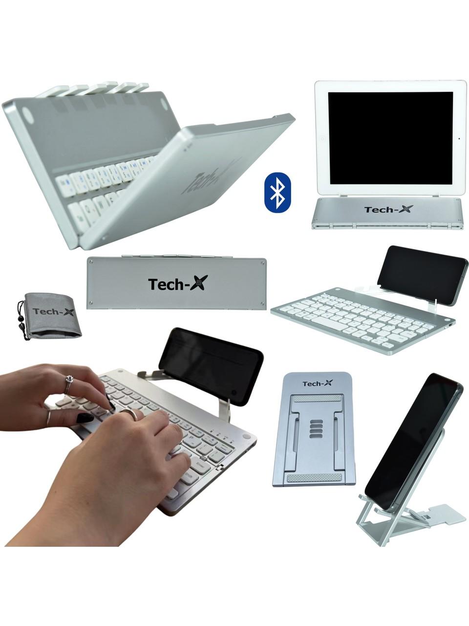 Tech-X Win/iOS/Android Uyumlu Katlanabilir Bluetooth Klavye Telefon Tutucu Kılıf Hediyeli