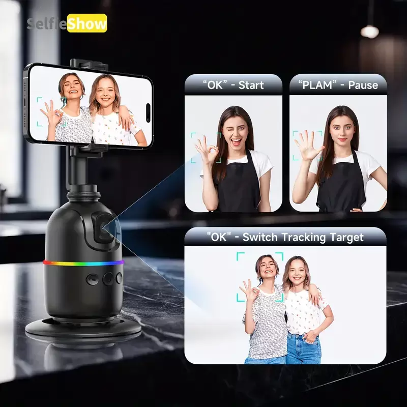 Akıllı Yüz Tanıma, Panoramik Takip İçin Selfie Tripodu ve Titreşimi Önleyici, Otomatik Yüz Takip Tripodu, 360 ° Dönebilen Telefon Kurulumu, Akıllı Telefon Takip Tutucu.