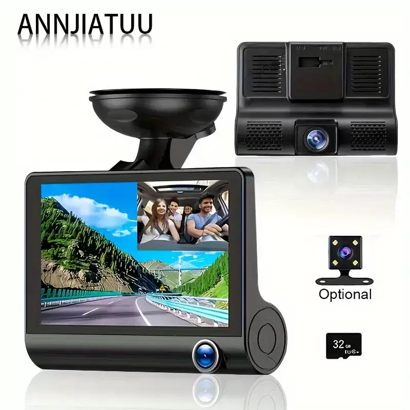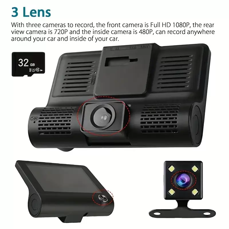 Yeni Üç Lensli Yüksek Çözünürlüklü Gece Görüşlü Sürüş Kaydedici, Emme Kupası Montajı İle, Araçın Ön, İç ve Arka Kısımları İçin Üç Kamera, Senkron Kayıt, Ters Görüntü ve Döngüsel Kayıt İle.