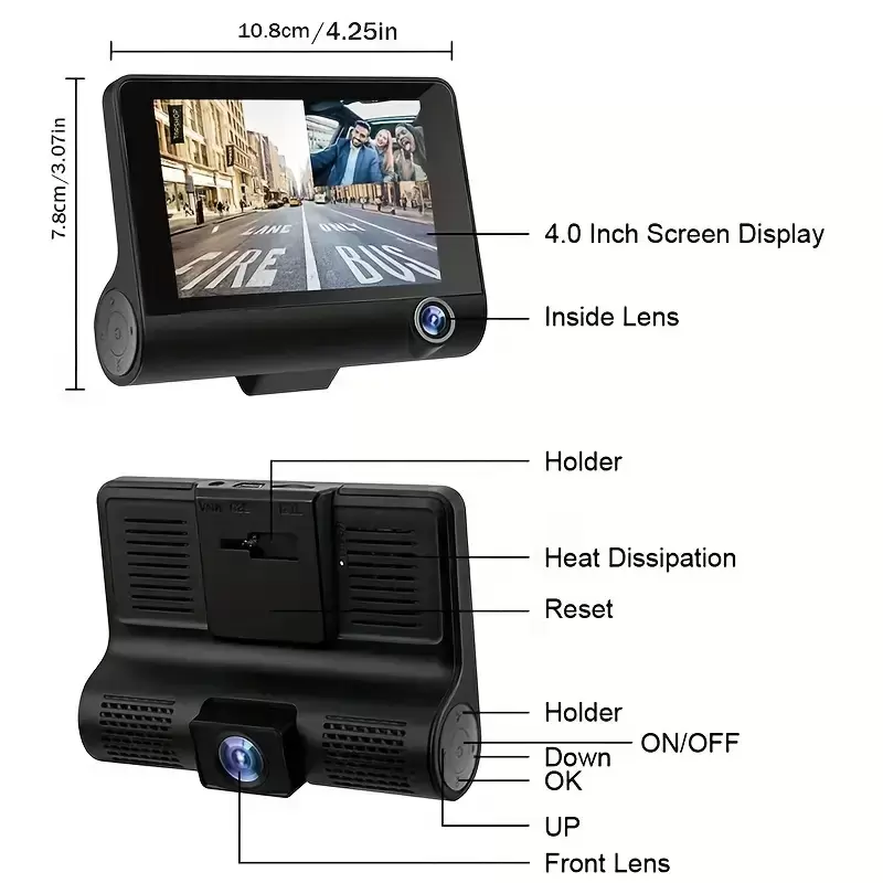 Yeni Üç Lensli Yüksek Çözünürlüklü Gece Görüşlü Sürüş Kaydedici